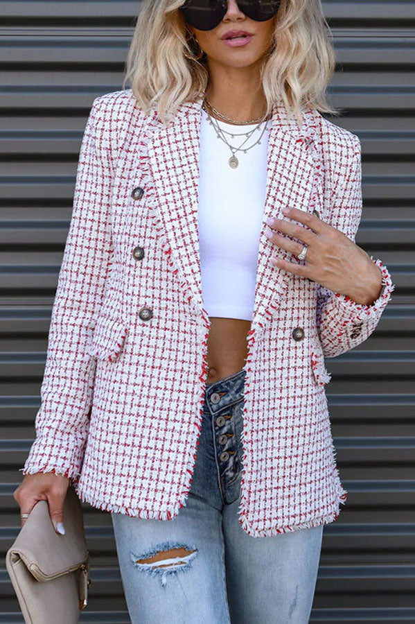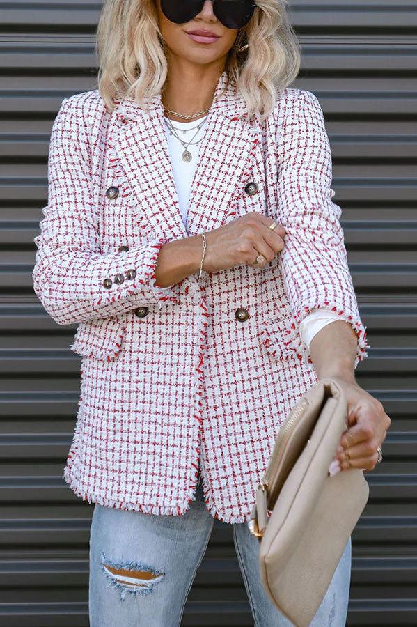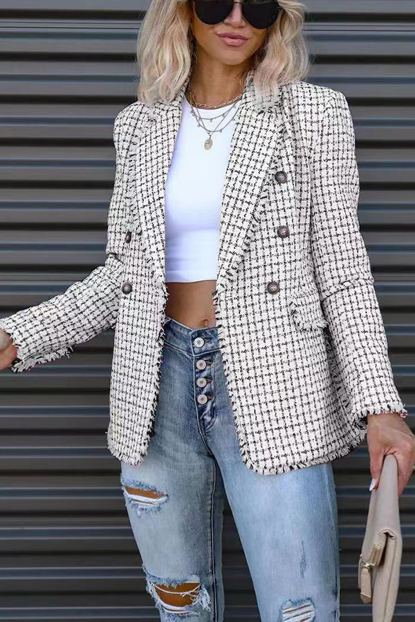 Out In NYC Tweed Plaid Double Breasted Blazer